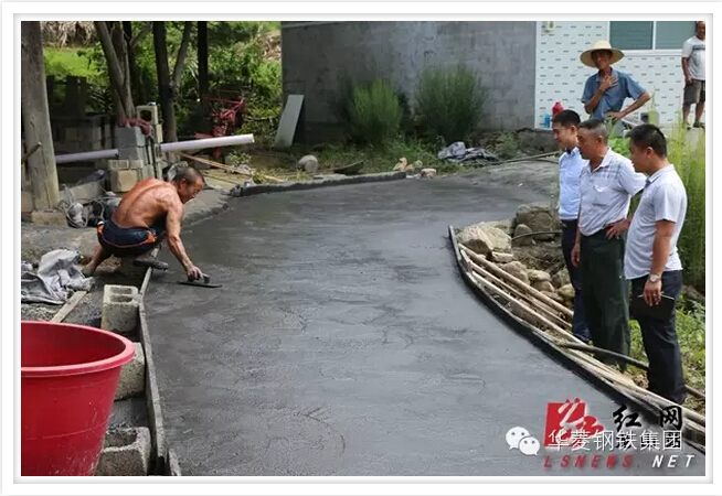 8月26日,龙山县苗儿滩镇红光村村民们正在忙于水泥硬化入户路,红光村是湖南省华菱集团驻村扶贫村。全村预计共水泥硬化入户道路约6000米,该项目由华菱集团出资10万元购买水泥、砂子,村民自己出工出力,9月底将全部完工,项目的完成将大大改善全村的交通条件。