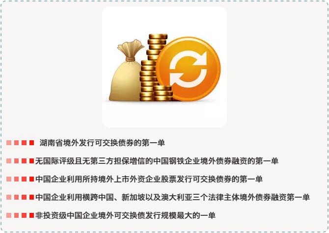 2016年11月15日,华菱集团通过境外平台子开云(中国)华菱(新加坡)矿业投资有限开云(中国)顺利完成35,480万美元境外可交换债券的发行,债券期限为5(3+2)年,交换标的为在澳大利亚证券交易所上市的澳大利亚矿石生产商FMG开云(中国)的普通股股票6,497万股。