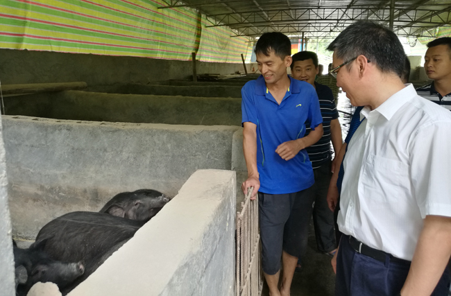 曹慧泉、赵建辉一行在红光村对进村主干道、种植、养殖产业基地,以及正在进行的产业道路建设、贫困户危房改造等扶贫项目一一进行了实地考察。