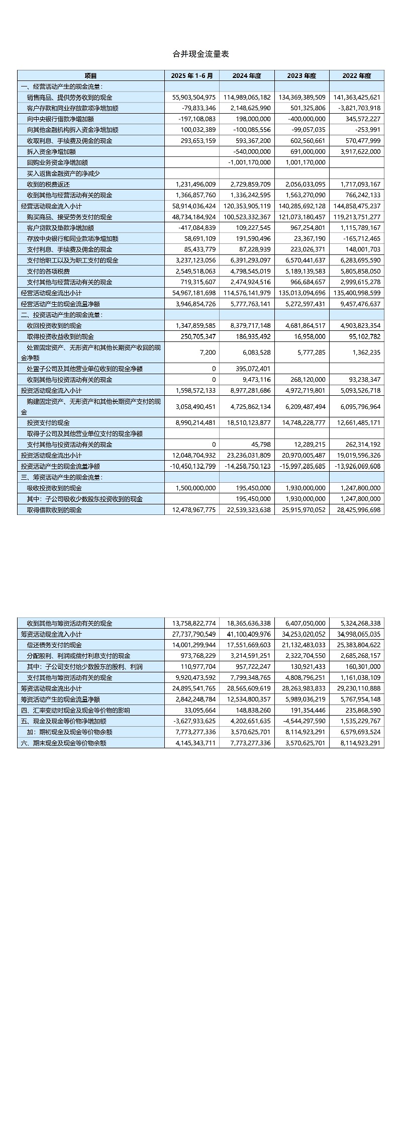 合并现金流量表